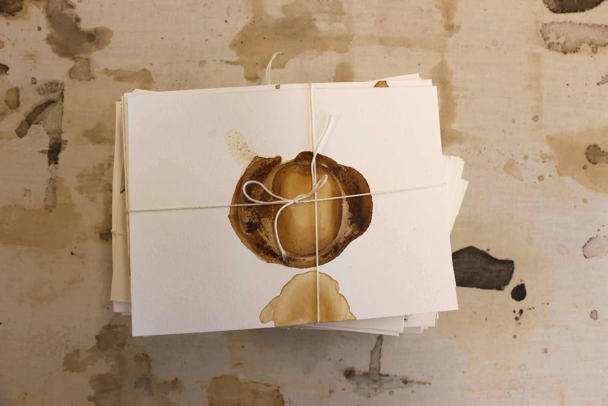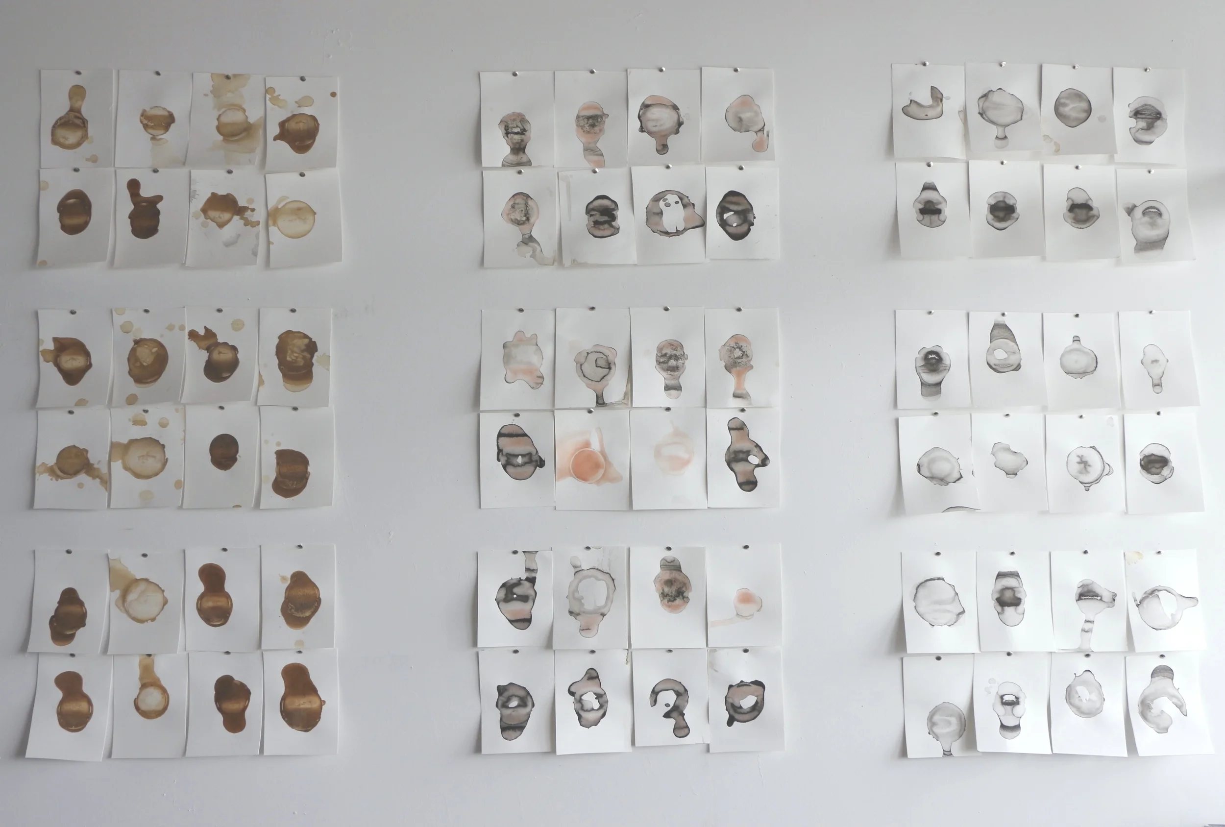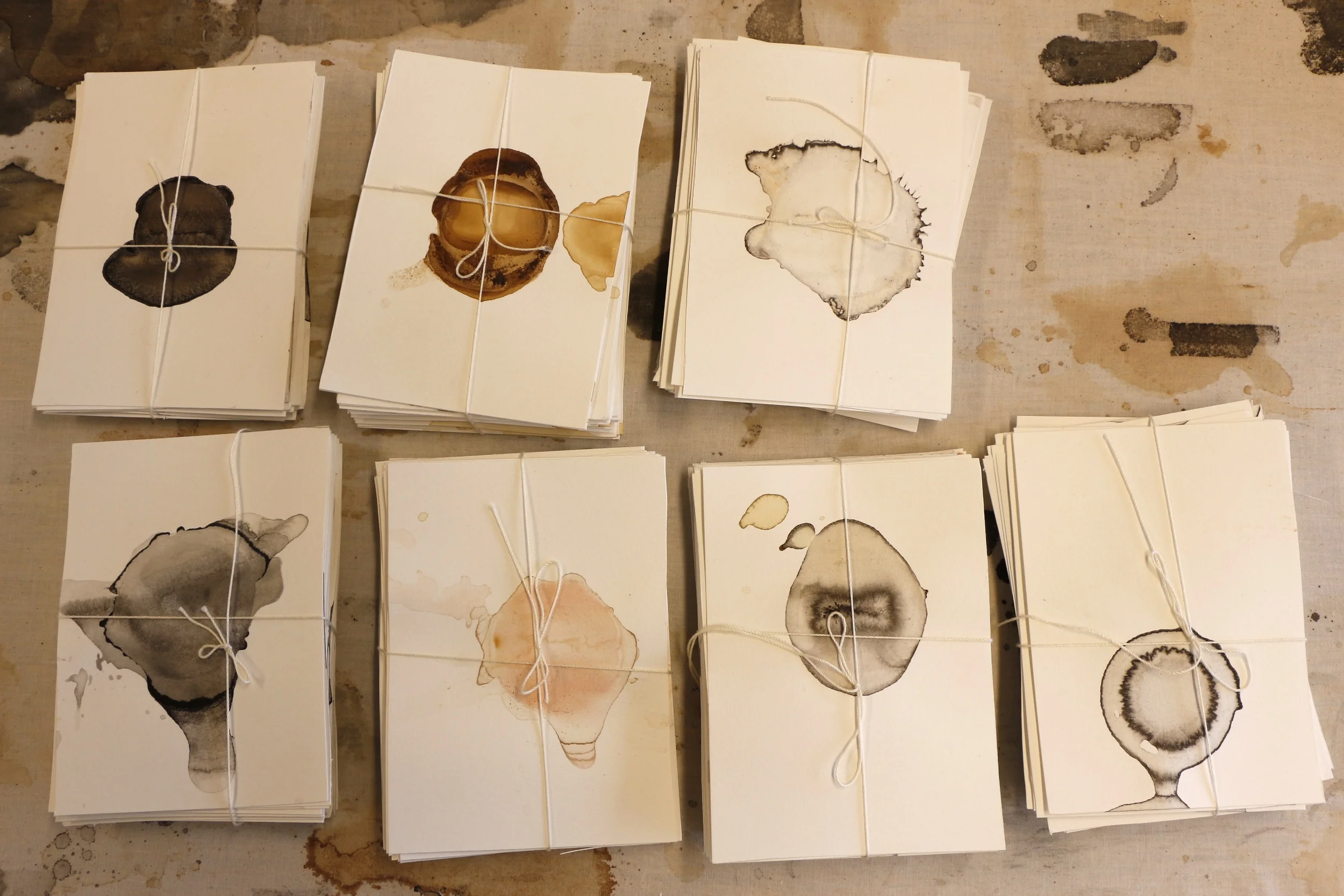 Canning Jar Lid Series / Tea, salt, ink, and mica on paper / 2015